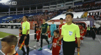 双方球员入场,比赛马上开始