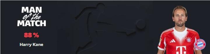在今天晚上进行的德甲第4轮比赛中,拜仁客场4-1击败霍芬海姆,赛后,凯恩被评为本场比赛最佳球员。