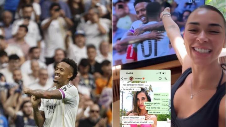 塔伊娜很快在社交媒体上庆祝了这一时刻,分享了一段拍摄自电视的画面,视频中展示了这名皇马中卫的进球,并附上了一张比赛前与这位皇家马德里球员的聊天截图。“我爱你,踢得漂亮,我的小猫。”她在社媒写道。