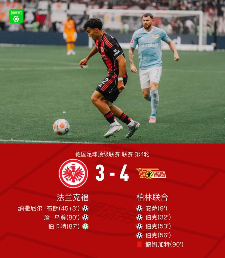 法兰克福3-4柏林联合,伯克戴帽,伯卡特点射,瓦希送助攻