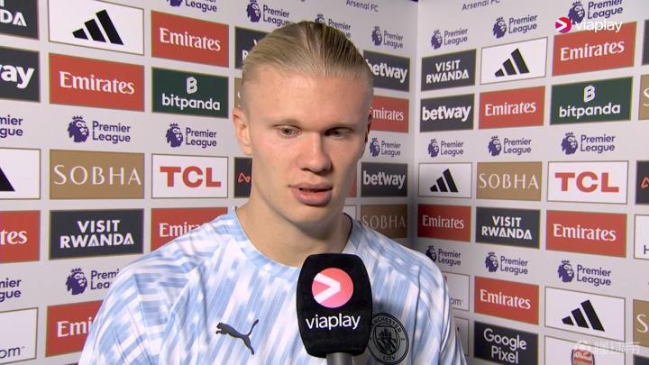 在英超第5轮打进一球帮助曼城客场1-1战平阿森纳之后,哈兰德接受了来自Viaplay的采访。