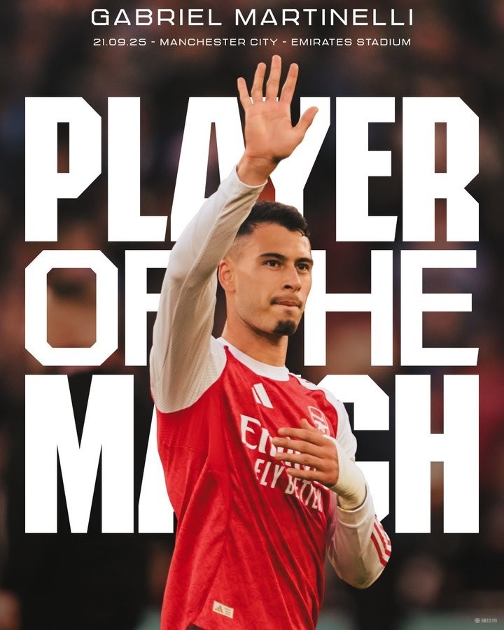 在昨天晚上进行的英超第5轮比赛中,阿森纳主场1-1战平曼城,赛后,马丁内利被评为阿森纳队内本场比赛最佳球员。
