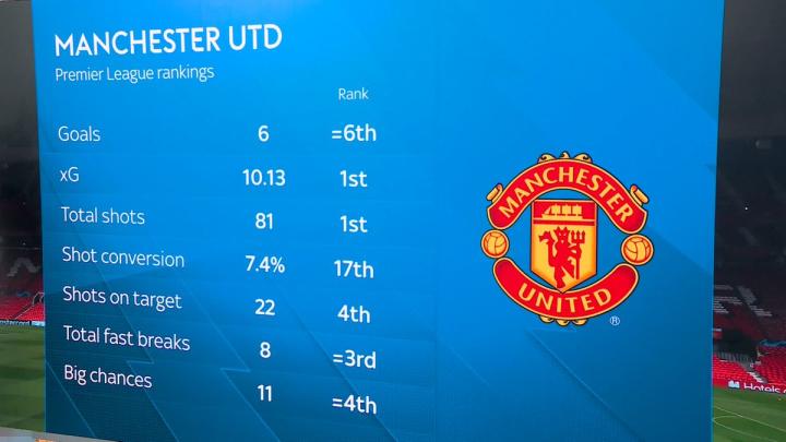 据统计,曼联在本赛季的英超联赛当中展现出的进攻效率非常不理想。