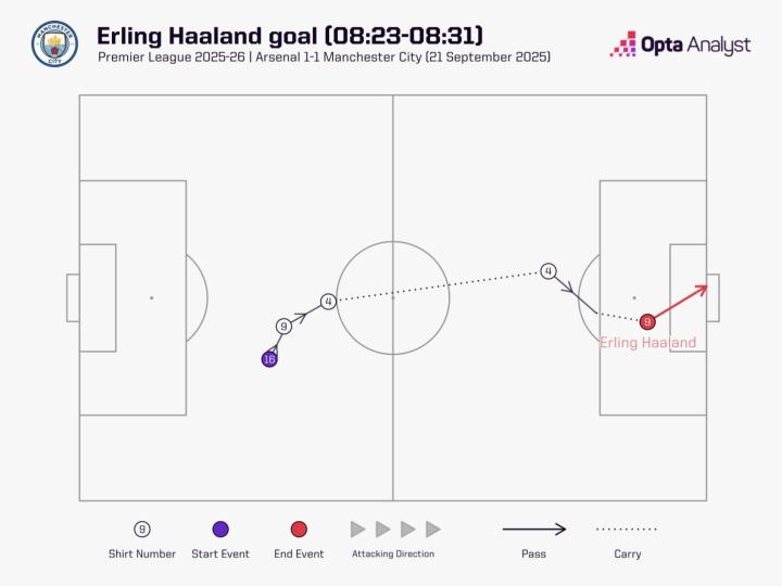 那粒进球正是源于一次快速、直接的反击:哈兰德在中场摆脱压迫后送出妙传,赖因德斯带球推进,再找到哈兰德完成射门。