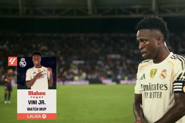 西甲第6轮,皇家马德里客场4-1击败莱万特,此役传射建功的维尼修斯当选西甲官方全场最佳球员。