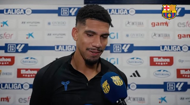 在客场与奥维耶多的比赛中,阿劳霍在终场前为巴萨打入第三球,帮助球队以3-1锁定胜局,赛后他接受了媒体采访。