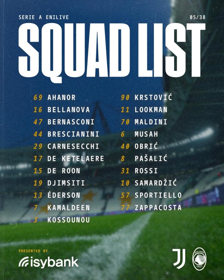 北京时间9月27日,亚特兰大公布了意甲第5轮他们做客挑战尤文图斯的大名单,包括斯卡尔维尼、希恩、巴克、科拉希纳茨、扎莱夫斯基以及斯卡马卡在内的多名伤员缺阵。