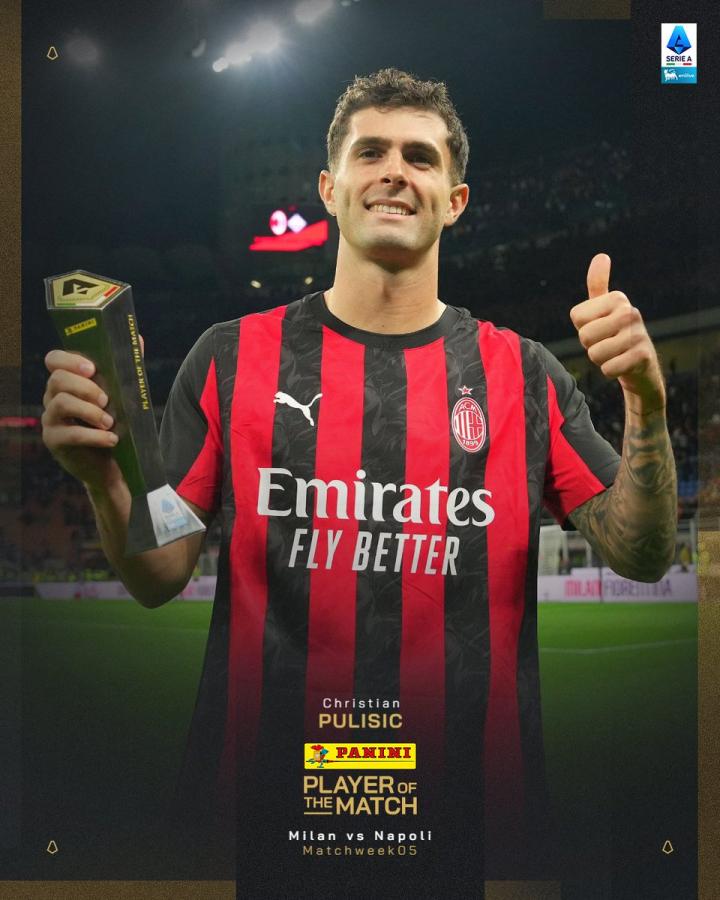 官方消息,普利希奇当选米兰对阵那不勒斯一役全场最佳。
