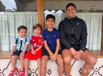 艾克森在社交媒体上分享了一段视频,视频里,他的孩子们都已经开始学习踢球,还有享受骑马的乐趣。
