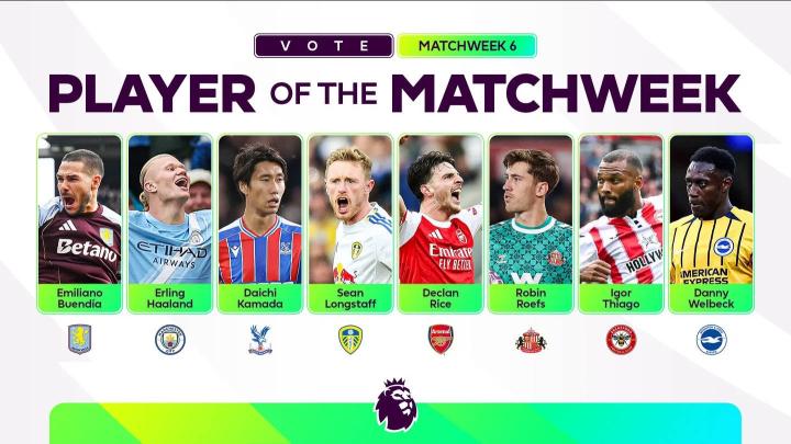 北京时间9月30日,英超官方公布了第6轮比赛日的最佳球员候选名单,其中哈兰德、赖斯、维尔贝克在列。