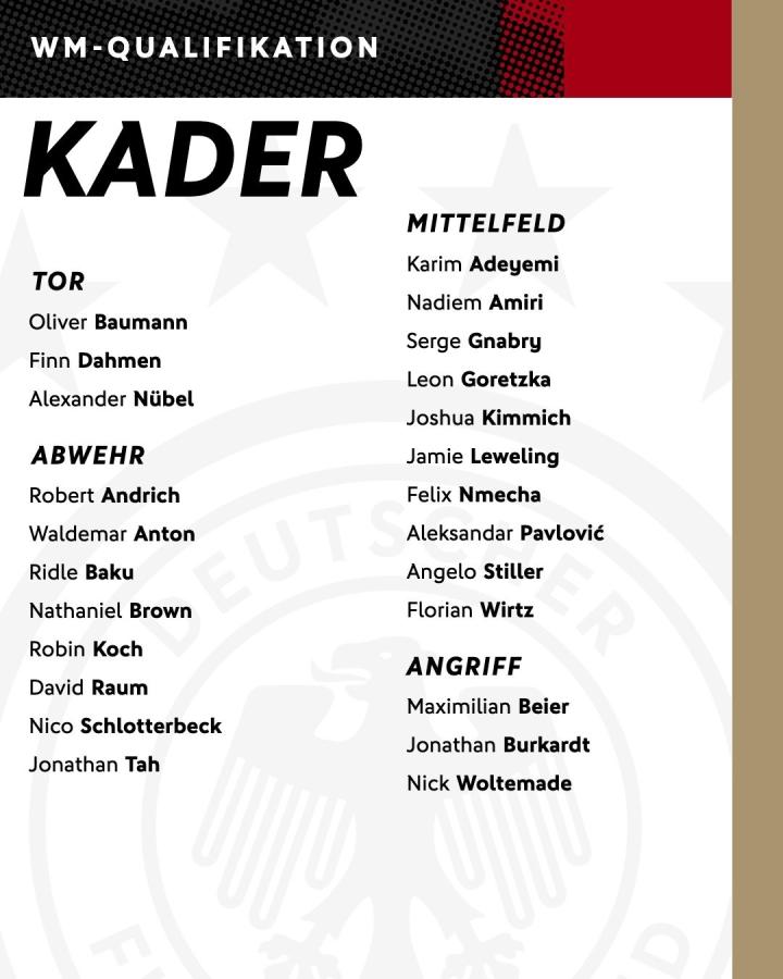 北京时间10月2日,德国足协官方公布了德国10月世预赛的大名单。