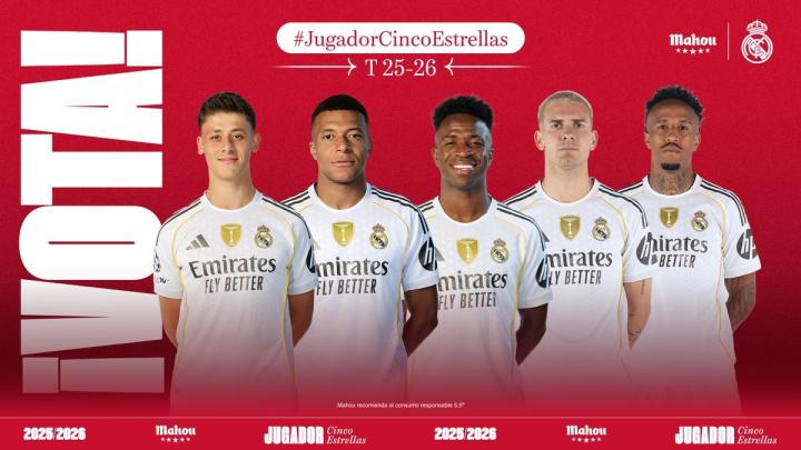 官方消息,皇家马德里9月最佳球员候选名单公布,姆巴佩领衔,维尼修斯、居莱尔在列。