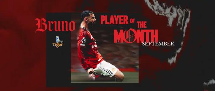 官方消息,布鲁诺-费尔南德斯当选曼联9月最佳球员。