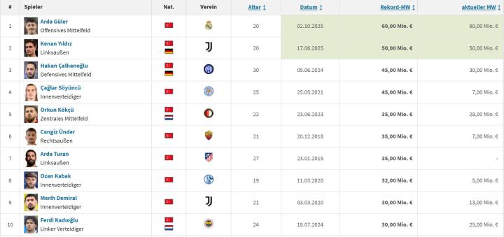 今日德国转会市场网站更新了西甲球员身价,其中皇马中场居莱尔身价从原来的4500万欧涨至6000万欧,创造了新的土耳其球员身价纪录。