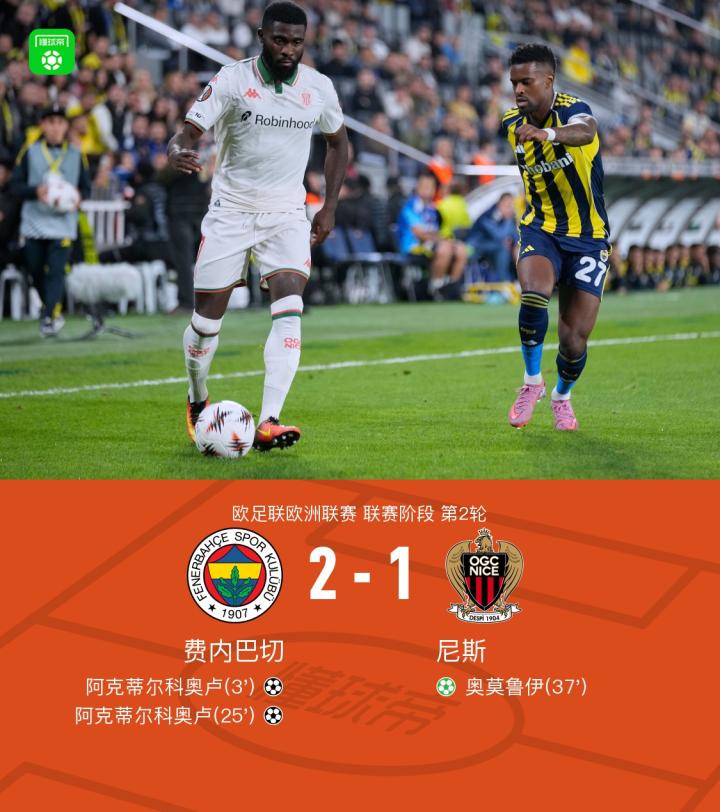 费内巴切2-1尼斯,阿克蒂尔科奥卢双响,奥莫鲁伊点射