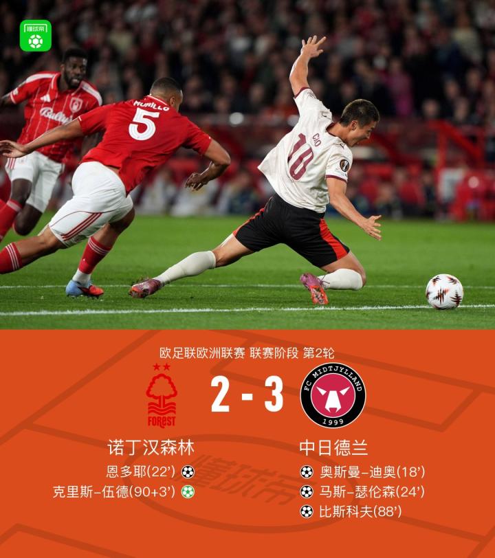 中日德兰3-2诺丁汉森林,比斯科夫破门,马斯-瑟伦森传射