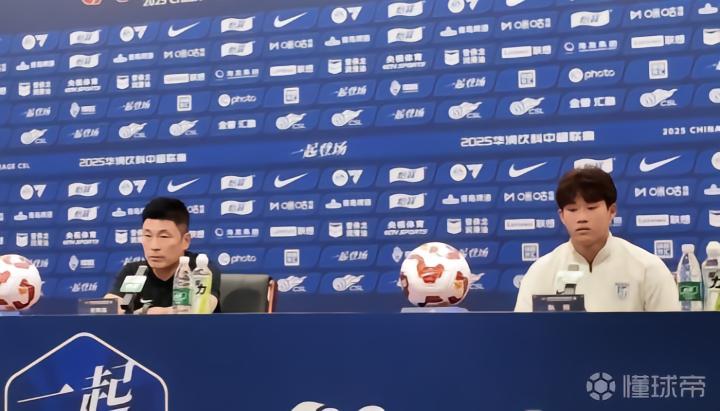 北京时间10月3日,在中超第23轮补赛,大连英博主场对阵青岛西海岸的赛前,英博主帅李国旭和队员杨铭锐出席了新闻发布会。