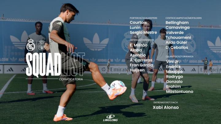 皇家马德里官方公布了西甲第8轮主场对阵比利亚雷亚尔的比赛大名单,姆巴佩领衔,米利唐回归。比赛将于北京时间10月5日3:00进行。