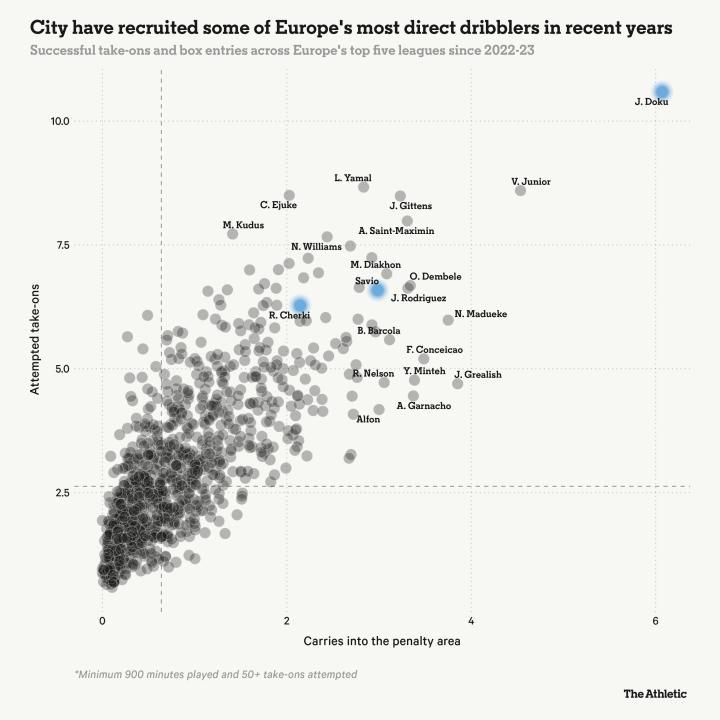 考虑到曼城经常面对低位防守的球队,这凸显了多库以一种极少数球员能够做到的方式在对手防线上撕开缺口的能力。