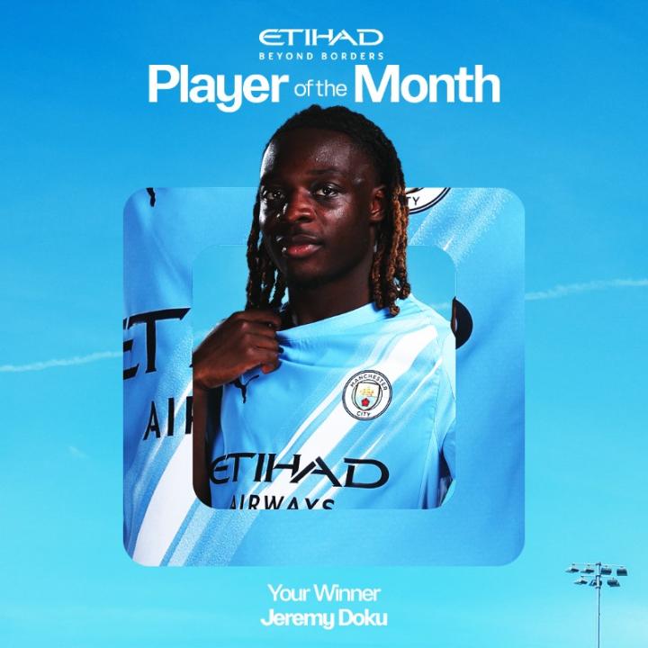 北京时间10月7日,官方消息,多库当选曼城9月最佳球员。