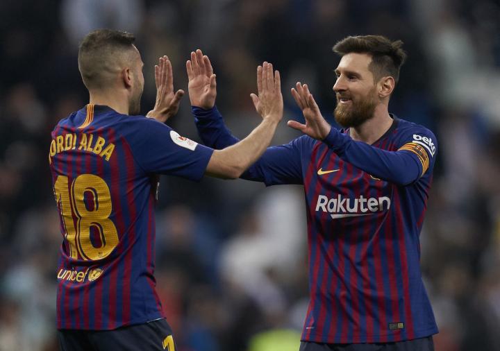 16-17赛季国家德比,梅西在伯纳乌读秒绝杀皇马,阿尔巴送上倒三角助攻,堪称“巴西连线”里最经典的一幕。