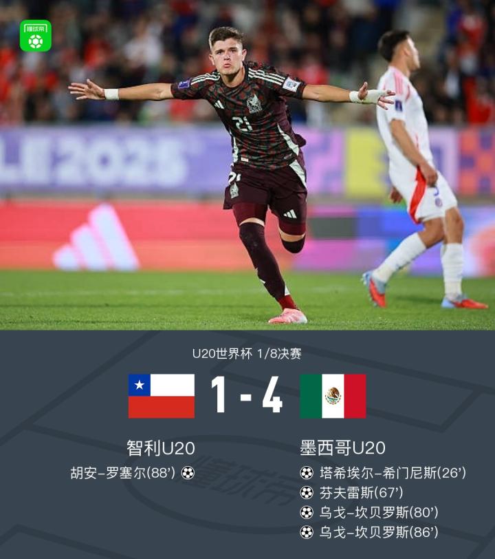 墨西哥U20 4-1大胜智利U20,坎贝罗斯梅开二度,芬夫雷斯建功