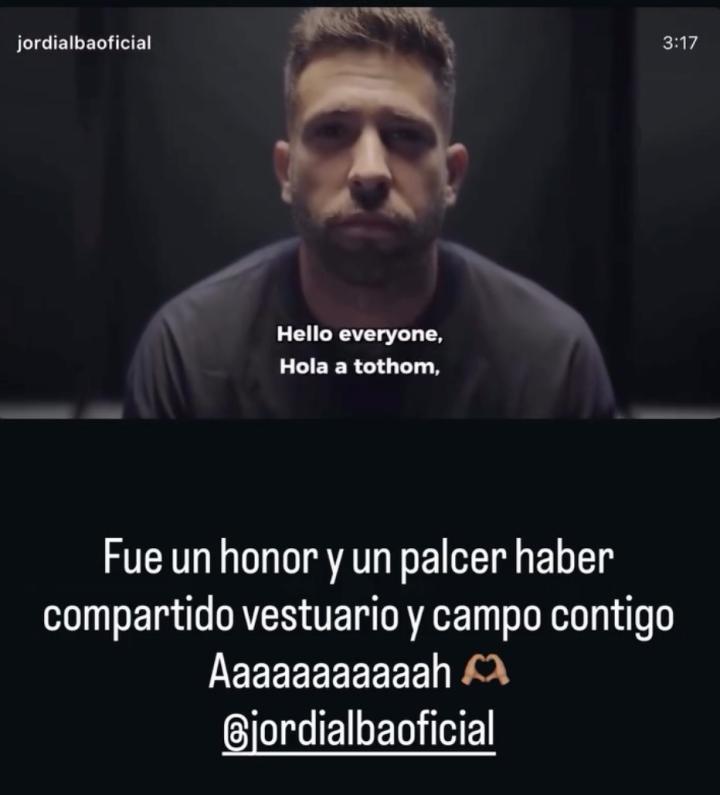 在阿尔巴宣布赛季结束退役后,作为巴萨队长之一的拉菲尼亚在社交媒体转发了阿尔巴宣布退役的视频,并写道:“能与你同处一个更衣室、并肩战斗在球场上,是一种荣幸也是一种快乐。啊啊啊啊啊🫶”