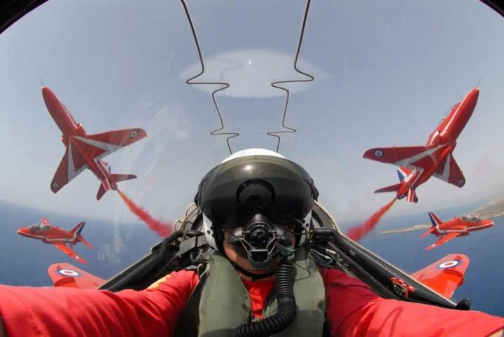 休斯曾是“红箭”的九名飞行员之一。每个团队成员都需要在皇家空军拥有至少1500小时的飞行经验,才能被视为出色的飞行员。