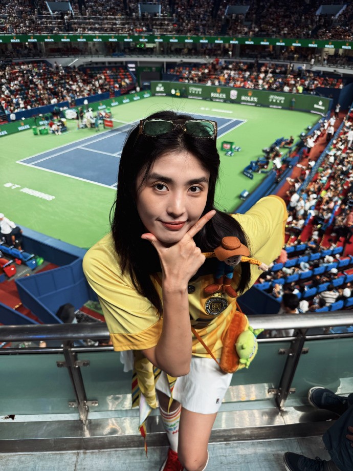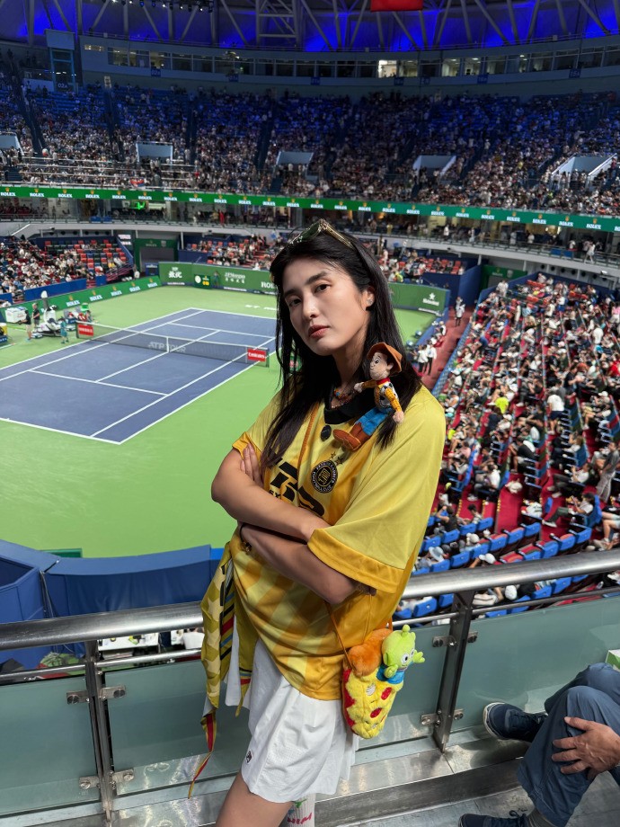 10月9日晚,前女足国脚、上海女足球员赵丽娜在社交媒体上分享了自己观看上海大师赛网球比赛一些瞬间。