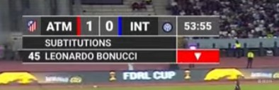 比赛进行到第54分钟的时候,国米进行了一次换人,由卡奇马尔斯基换下了莱昂纳多-博沃,但转播信号中给出的被换下球员却是短暂效力过国米的意大利足球名宿博努奇,而换上的则是另一位此前曾效力过国米的球员埃里克森。