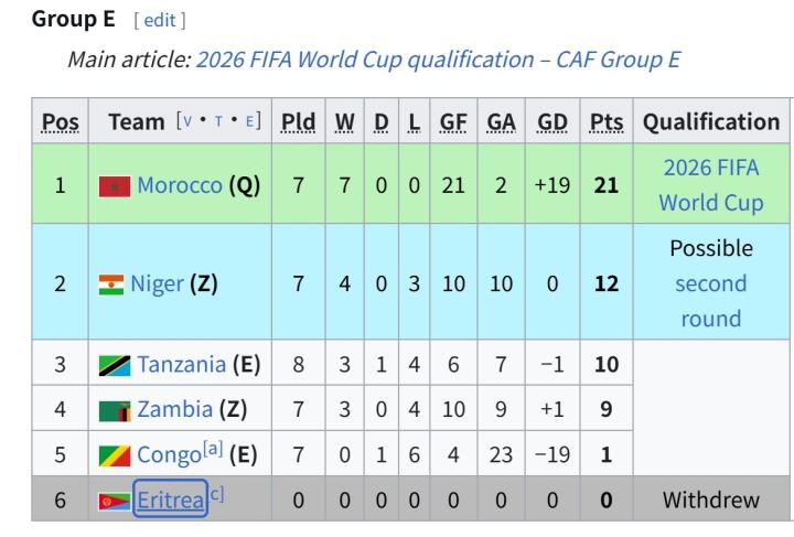 10月10日,据《队报》消息,由于厄立特里亚队退赛,因此世预赛非洲区在计算“最佳小组第二”时,各队与所在小组垫底球队比赛所得的积分将被剔除,以免厄立特里亚所在小组的球队受到不利影响。但令人颇为意外的是,厄立特里亚在世预赛开始前便已退赛,但这一决定直到赛程过半才由官方下达给各队。