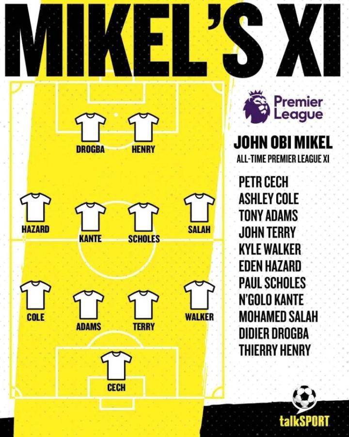 北京时间10月11日,切尔西旧将米克尔在接受talksport采访时评选出了自己认为的英超最佳十一人阵容。