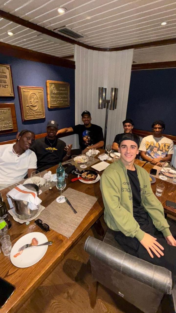 正在养伤的加维今日在社交媒体晒出一张他和现队友、前队友在一家餐厅聚会的合照,除了加维外,照片中还包含巴萨球员阿劳霍、埃克托-福特和阿莱士-巴尔德、巴萨外租球员法蒂以及前巴萨球员莫里巴。