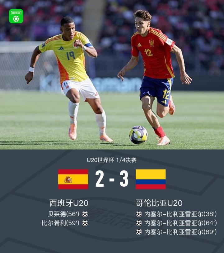 哥伦比亚U20 3-2西班牙U20闯进四强,内塞尔-比利亚雷亚尔帽子戏法