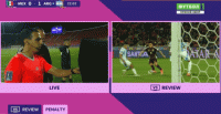 第23分钟,莫拉禁区内倒地,墨西哥挑战VAR,回看后裁判宣布挑战失败