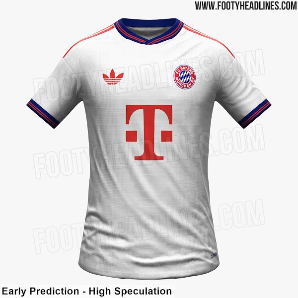 Footy Headlines独家披露了有关拜仁慕尼黑2026-27赛季客场球衣的早期消息。新球衣将采用传统的白色设计,并带回几乎消失了25年的经典“Bayern e.V.”俱乐部徽章。