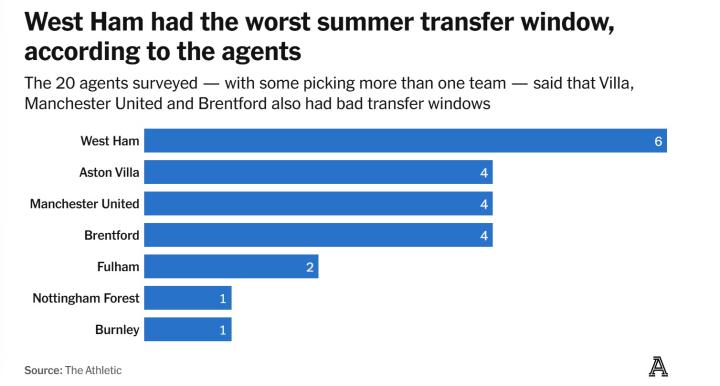 维拉被描述为在夏季窗口后“正在倒退”,伯恩利“上赛季租借了那么多带有强制买断条款的球员,把事搞砸了”,富勒姆在几乎没有加强实力后“可能会开始担心了”。