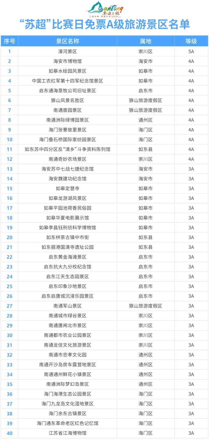 据南通发布消息,南通40家A级景区对苏超半决赛持票球迷与无锡市民免票。