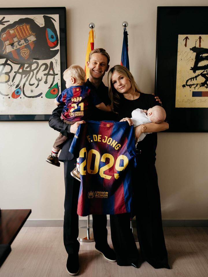 在弗朗基-德容与巴塞罗那续约至2029年后,德容妻子在社交媒体晒出多张照片并发表感言。
