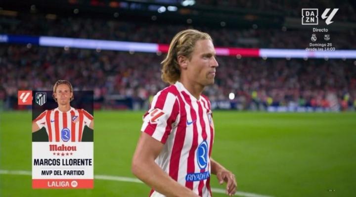 帮助球队在主场1-0击败奥萨苏纳后,马竞后卫略伦特当选全场最佳,赛后他接受了DAZN的采访。