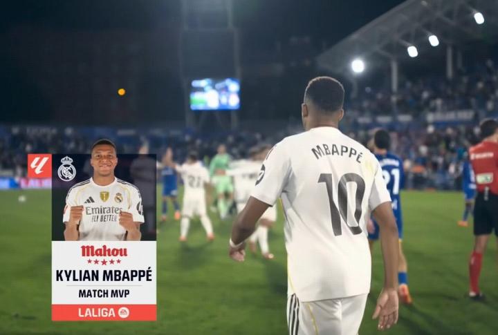 官方消息,姆巴佩当选赫塔费对阵皇家马德里一役全场最佳。