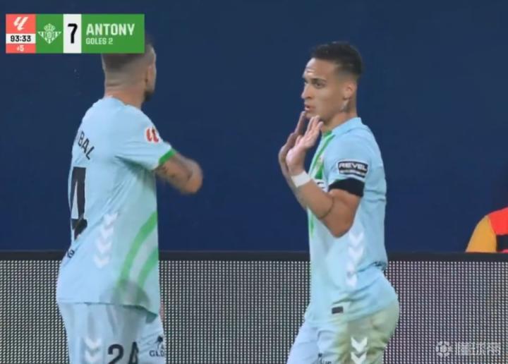 西甲第9轮,比利亚雷亚尔主场2-2贝蒂斯,安东尼93分钟打进扳平球后,主场球迷对其庆祝动作不满,从看台上向他扔水瓶,安东尼的队友鲁伊瓦尔帮他挡住了水瓶。