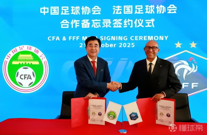 北京时间今天,中国足协官方发布消息称,与法国足协在京共同签署了《中国足球协会与法国足球协会合作备忘录》。