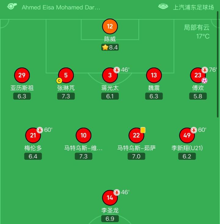 上海海港方面,三名外援梅伦多、维塔尔、茹萨首发上阵,莱昂纳多替补登场。