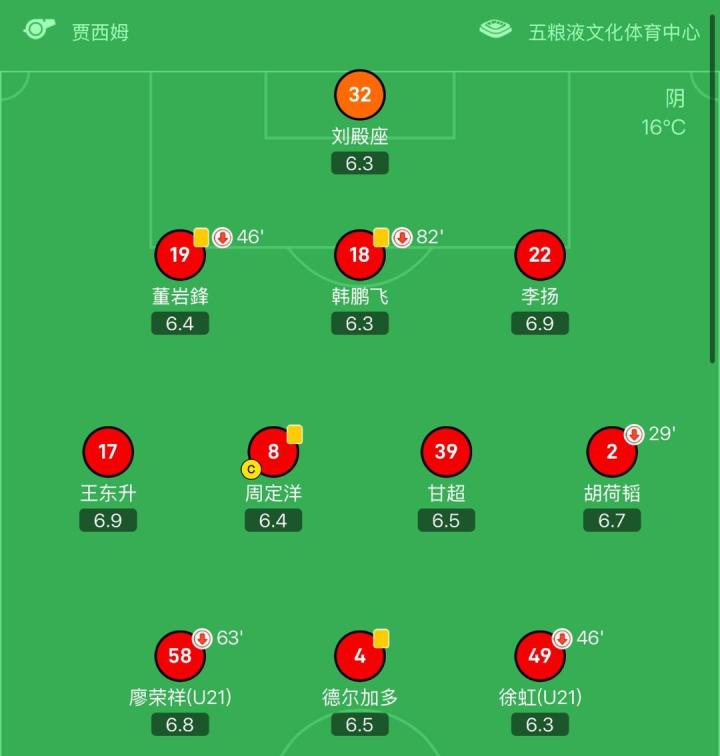 成都蓉城方面,外援古尔芬克尔、费利佩、提莫-莱切特都是替补出战。