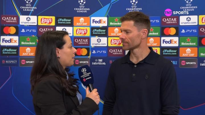 本赛季欧冠联赛阶段第3轮,皇马主场1-0战胜尤文图斯。皇马主帅哈维-阿隆索接受了TNT体育的赛后采访。