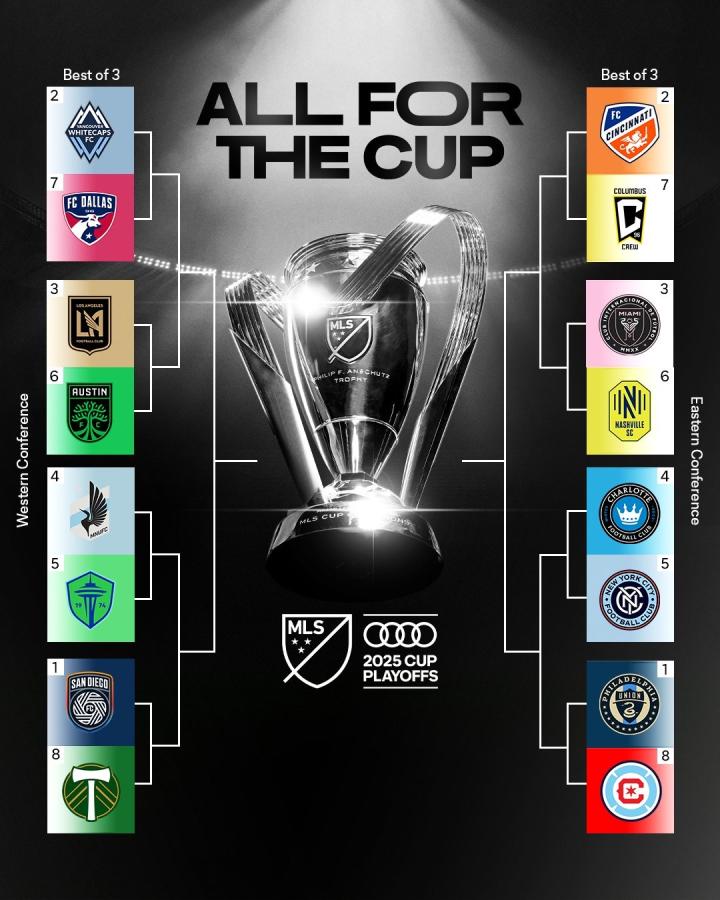北京时间10月23日,美职联季后赛首轮对阵出炉。