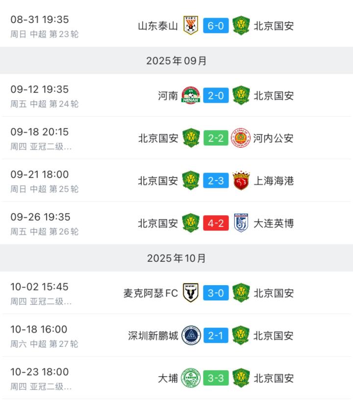 接下来,北京国安将在10月26日晚主场迎战青岛海牛。国安目前积51分排名第四,还剩3轮落后榜首9分,争冠已无希望。