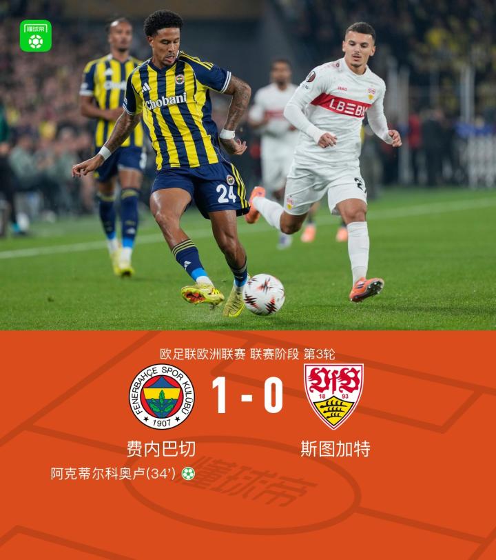 费内巴切1-0斯图加特,阿克蒂尔科奥卢点射制胜