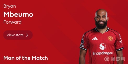 英超第9轮,曼联主场4-2击败布莱顿,此役上演梅开二度的曼联前锋姆伯莫当选英超官方全场最佳球员。